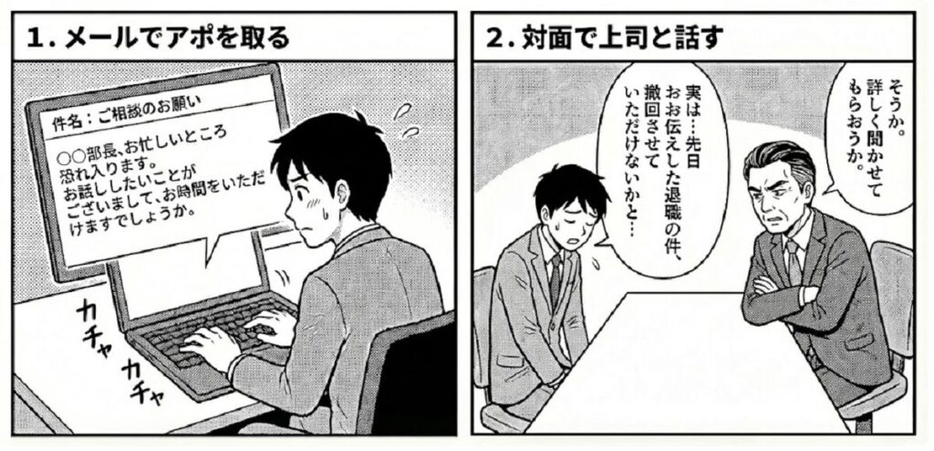 - 退職を撤回したいけど、上司にどう切り出せばいいですか?
