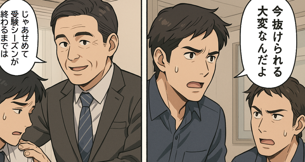 辞めたい意思を伝えても、塾側からは「せめて受験が終わるまで」「学期末までは続けてほしい」といった引き止めが入るケースが非常に多いです。